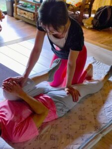 ヨガレッスン中に整体施術も取り入れた気持ちいい~
